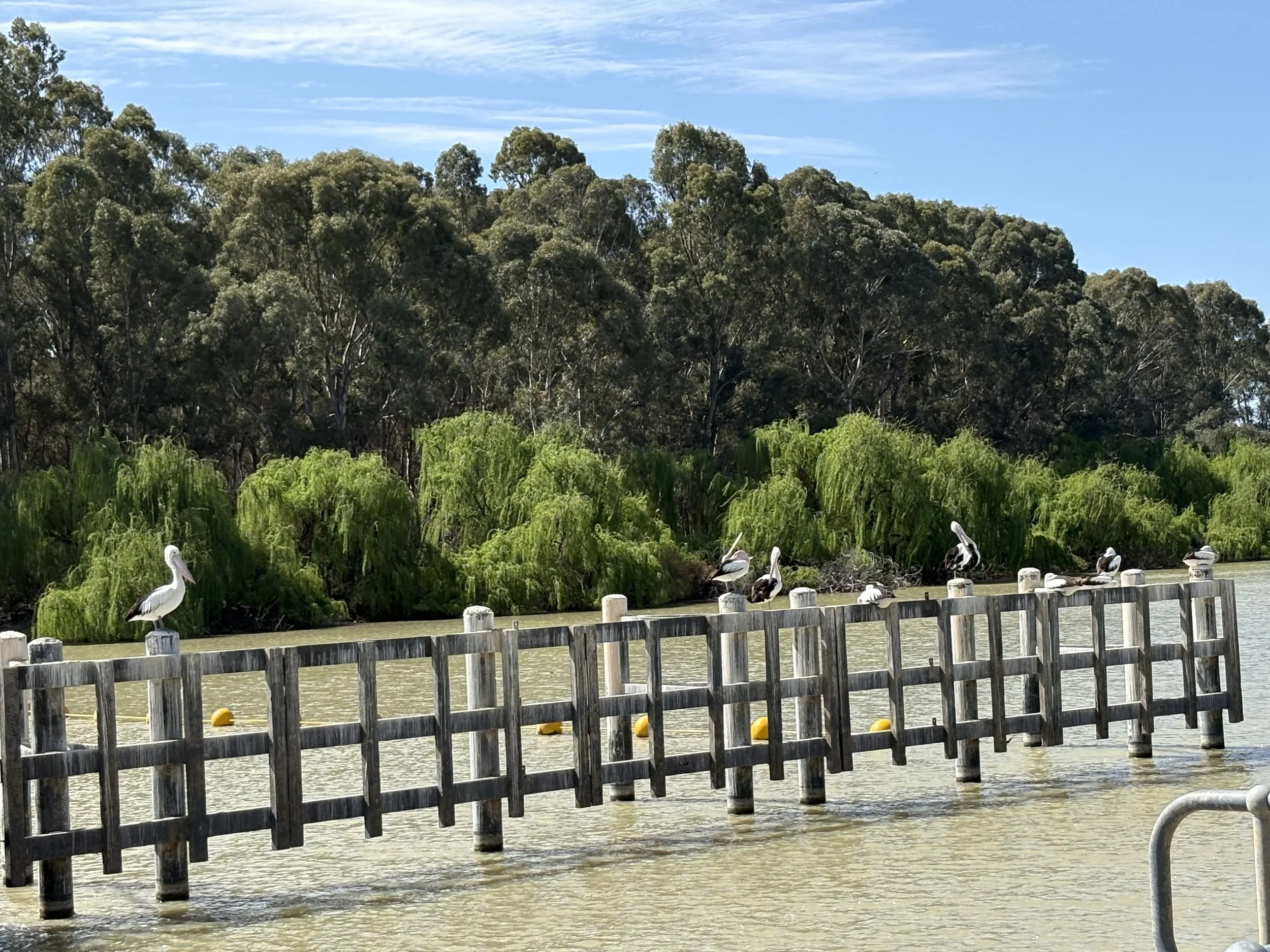 Adding to the day’s magic was the surrounding wildlife. Pelicans perched on timber beams of the Lock structure, hoping for a catch, while Whistling Kites soared above. The group was fascinated to learn that approximately 7,000 megalitres of water flows through the lock each day.