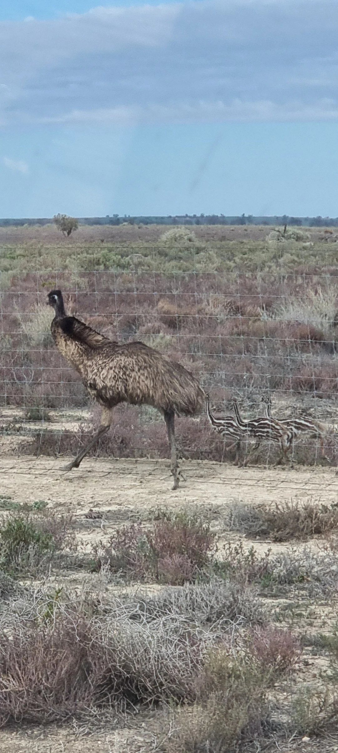Following lunch, we made our way to the old pumping station before joining the “Old Mail Road,” passing the historic Kulnine Station Homestead and its original shearing shed. A male emu and his four chicks followed us along a fence line. We also caught a glimpse of the tree-lined Wallpolla Creek—an area of great Aboriginal cultural significance. This vital waterway meanders through red gum floodplains, lignum swamps, and sandy rises. Recent consultation with Traditional Owners and Cultural Heritage authorities has supported the protection, revegetation, and respectful healing of burial sites in the area.